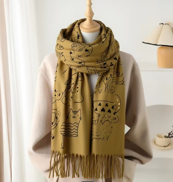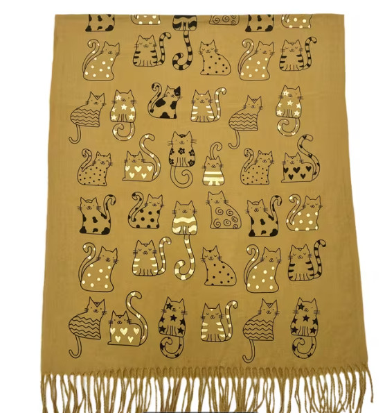 Divatos sál cicákkal-mustársárga
