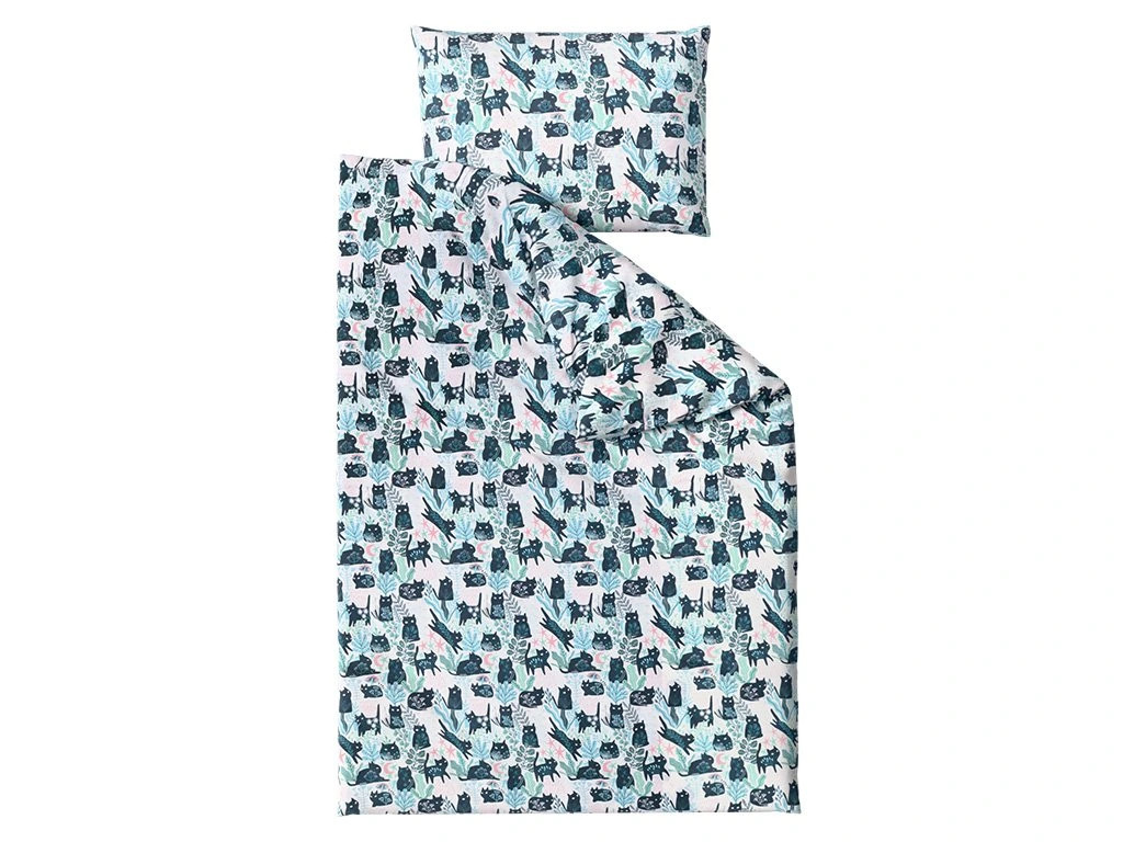 A fekete cicás ágyneműhuzat tökéletes választás mindazoknak, akik a hálószobájukat szeretnék egyedi, játékos, mégis elegáns hangulatú textíliákkal feldobni. A huzat különleges fekete macskás mintája modern és vidám megjelenést kölcsönöz a térnek, miközben a mikroszálas anyag biztosítja a kényelmet és a tartósságot. A szett része egy 70 × 90 cm-es párnahuzat és egy 140 × 200 cm-es takaróhuzat, amelyek méretüknek köszönhetően tökéletesen illeszkednek a standard ágyneműkhöz.