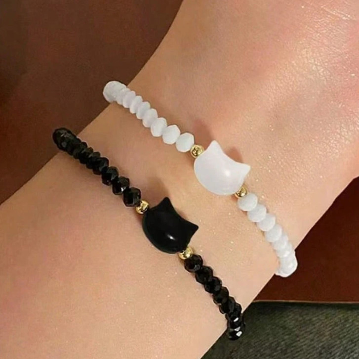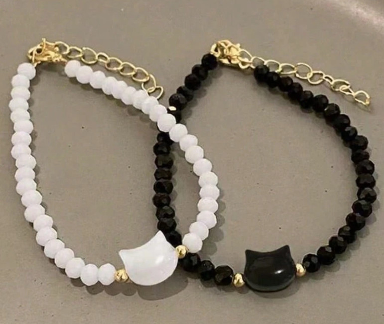 Ez a különleges 2 db-os cicás karkötő szett a tökéletes egyensúlyt képviseli a stílus és az érzelem között. A fekete és fehér gyöngy karkötők finoman kidolgozott macskafej medállal díszítettek, amelyek a harmóniát, az összetartozást és a cicák iránti szeretetet szimbolizálják. Kiváló választás pároknak, legjobb barátoknak vagy családtagoknak, akik szeretik az elegáns, mégis kedves kiegészítőket.