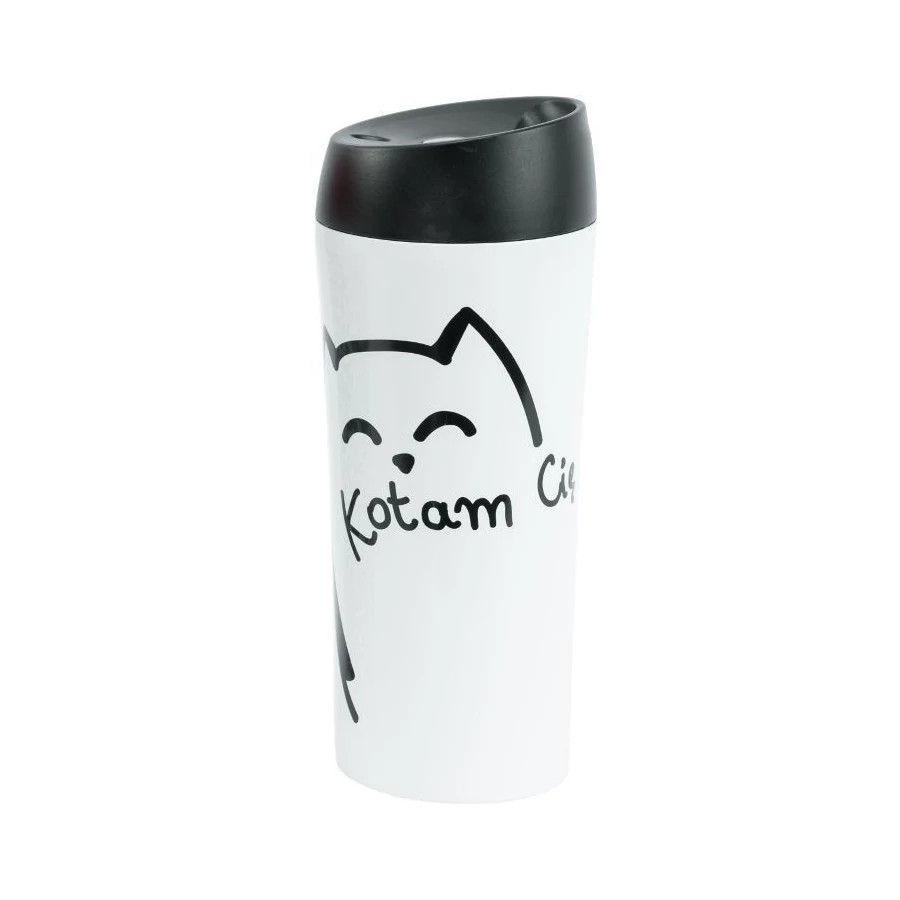 A termoszbögre szivárgásmentes fedéllel készült, így biztonságosan magaddal viheted táskában is. Letisztult fekete-fehér dizájnját aranyos macska motívum díszíti, ami sokak kedvenc, mindennap használt kiegészítőjévé teszi. Praktikus méretének köszönhetően kézben is kényelmes, és jól jön akkor is, ha útközben szeretnéd élvezni a kávét vagy a teát.