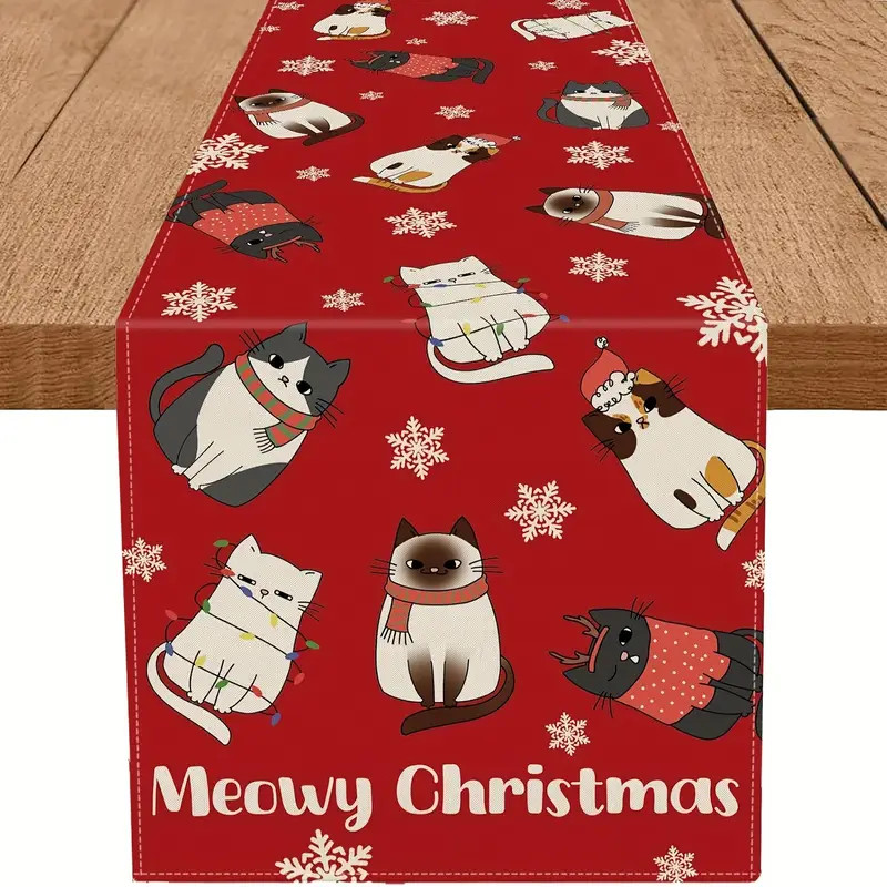 Karácsonyi macskás asztali futó – vidám ünnepi terítő macskabarát otthonokba